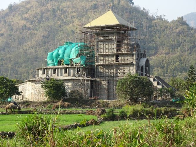 Mit dem Aushub begann auch das Erstaunen. Die 50 x 30 m und im Schnitt 3 m tiefe Baugrube für das Fundament wurde vollständig in Handarbeit bewerkstelligt. Bis zu 100 Menschen lockerten die Erde mit Pickel und Hacke und trugen das Material Schale um Schale weg. Steine und Erde wurden getrennt. Grosse Steine zerkleinert und für den Aufbau bereitet. Der Tempel wurde nur mit Hilfe von 2 Betonmischern und einem einfachen Aufzug erstellt, alles Andere war reine Handarbeit. Die Fröhlichkeit, Freude und der Einsatz der Frauen und Männer war bewunderswert. Noch nie habe ich auf einer Baustelle eine so gute Stimmung erlebt.